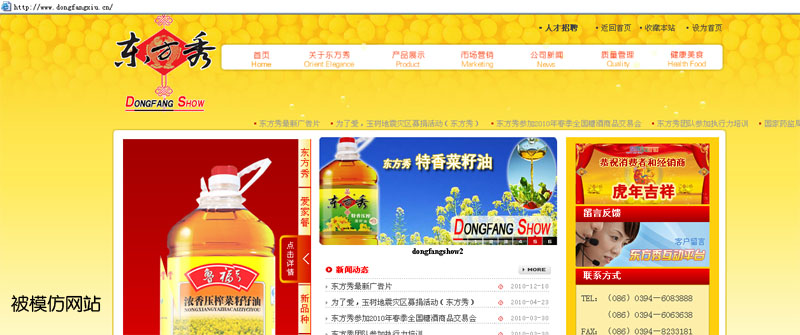 我公司制作的東方秀網(wǎng)站因優(yōu)秀的設(shè)計被人模仿。
